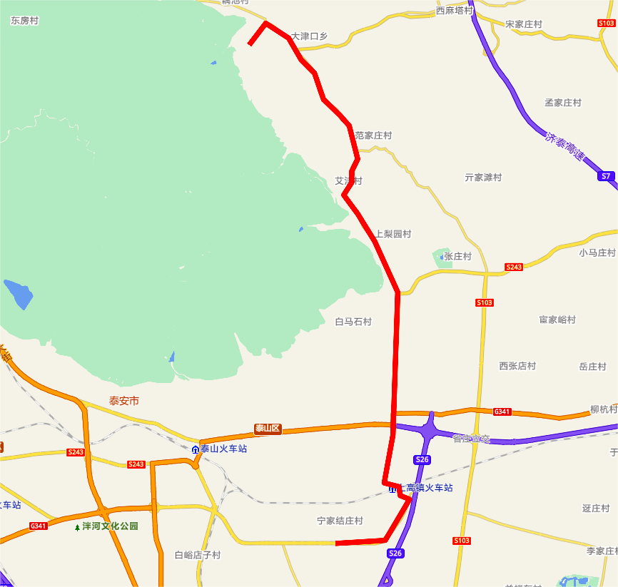 優(yōu)化調(diào)整后30路首末站變?yōu)樯硯X石敢當(dāng)小鎮(zhèn)和山東農(nóng)業(yè)大學(xué)泮河校區(qū)。運(yùn)行路線為沙嶺石敢當(dāng)小鎮(zhèn)—開明路—大津口鄉(xiāng)—泰明路—天燭峰路—靈山大街—上高東路—泮河大街—山東農(nóng)業(yè)大學(xué)泮河校區(qū);山東農(nóng)業(yè)大學(xué)泮河校區(qū)—泮河大街—上高東路—靈山大街—天燭峰路—泰明路—大津口鄉(xiāng)—開明路—沙嶺石敢當(dāng)小鎮(zhèn)優(yōu)化調(diào)整后運(yùn)行路線圖如下:
